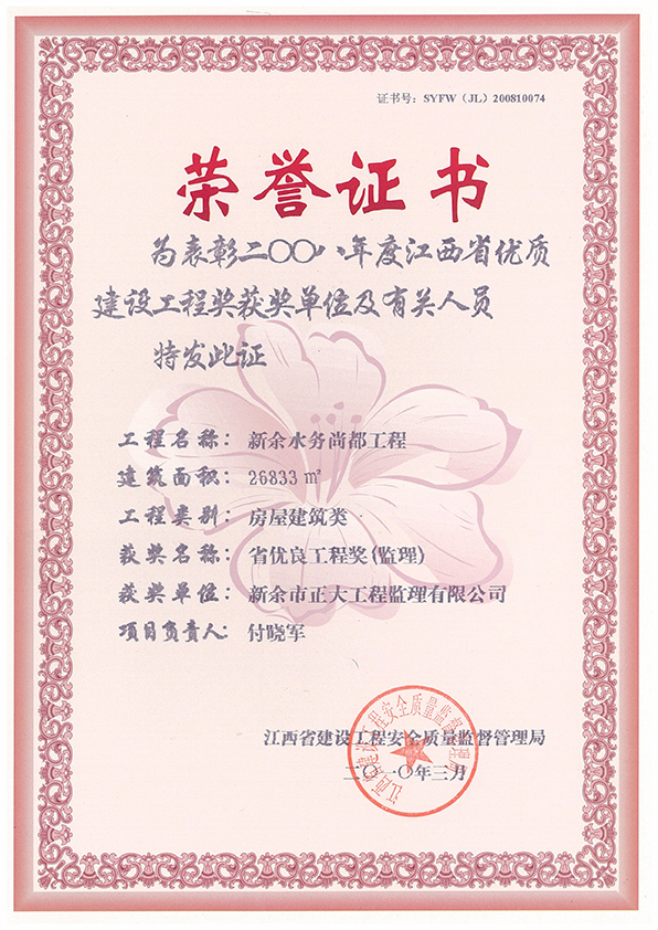 新余市正大工程監理有限公司依托新余市建筑設計院,于1995年11月成立,是新余市開展監理工作最早的監理單位,本公司具有建設部核發的房屋建筑工程甲級監理資質、市政公用工程乙級監理資質、國家人防辦核發的人防工程監理乙級資質。我公司始終堅持“客戶至上、質量第一、信守合同”的經營理念;追求“為社會創造價值、為業主創造效益、為自身謀求發展”的經營宗旨;遵循“守法、誠信、公正、科學、優質、高效”的工作原則,以雄厚的技術力量、完善的管理制度、豐富的監理經驗、良好的企業信譽迅速成為我市監理行業的一支新銳力量! 查看更多>>